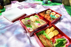 場所取りをして、みんなでお料理を持ち寄って