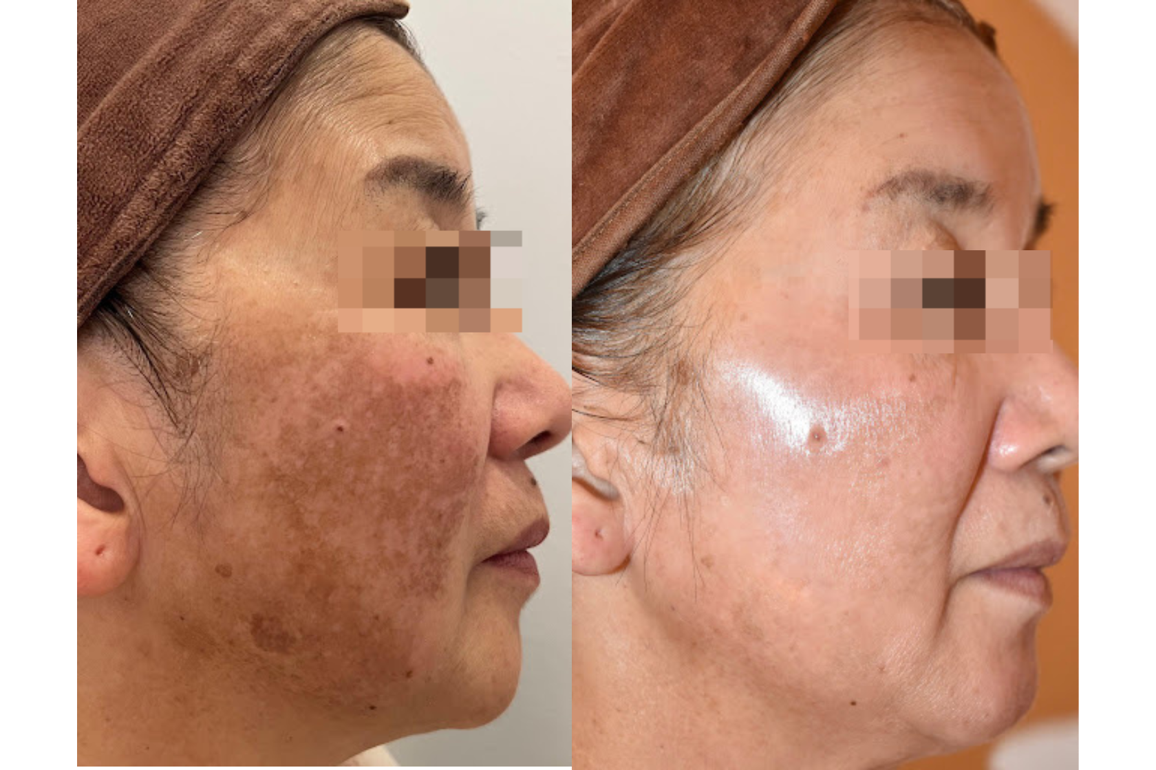 地図のように真っ黒なシミが両頬に広がっていました。ほかにも、シワやくすみ、たるみも目立っている状態でした。